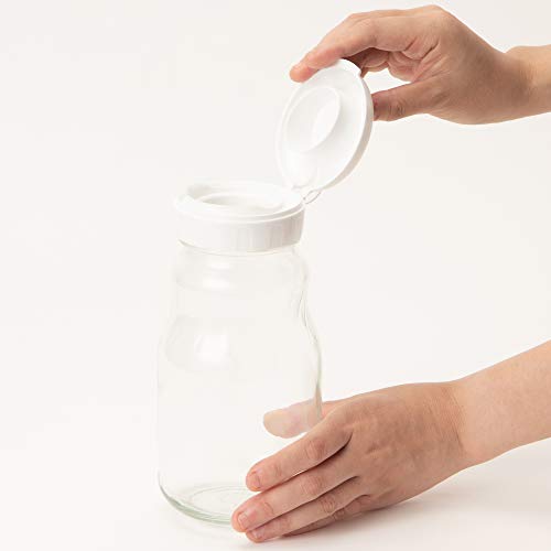 空き容器のペットボトルに詰め替えようと思ったら「じょうご」が要るし、しっかりキャップしてたら蓋をあけるときにプシュー!!と大惨事になったことがあります。このビンなら詰め替えしやすく、洗いやすく、密閉しないから良い。冷蔵庫のドアポケットにも入るので、ちょうど良いサイズで重宝しています。1つあれば便利です。蓋は赤以外にも、白い蓋を見つけました!可愛い!