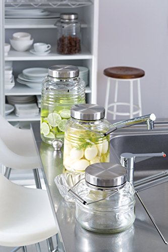 アデリアの保存びんです。アデリアは赤い蓋の瓶も製造していますが、先に紹介した東洋佐々木ガラスよりは少し高額。そんなアデリアから、蓋と持ち手がステンレスの保存びんが登場しています!赤いプラスチックの蓋に比べればかなり高額になりますが、このルックスとステンレス素材の値段を考えれば仕方ないか。