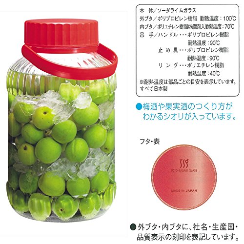 赤い蓋の保存びんは他にも複数の会社が製造していて、中国製の安価なものから国産の高価なものまでいろいろあります。品質的にはどれでも問題ないのですが、赤い蓋の瓶の中でもこちらをお勧めする理由は、中フタの替えを見つけやすいからです。長く使っていると、中フタが紛失したり、劣化したりして交換したいことがあります。そんなとき、中フタの替えを見つけやすいのは、現在のところ東洋佐々木ガラスです。他メーカーで中フタが売ってなくて困ったことがあるので、買いそろえるならこちら、安心の国内製造である東洋佐々木ガラスをお勧めします。上下に縦のラインが入っているのが特徴。